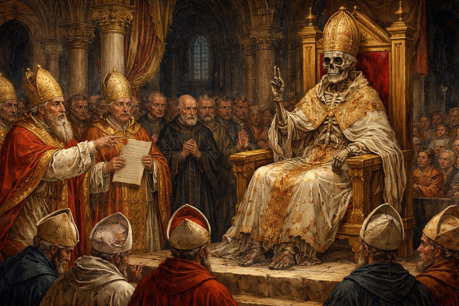 The corpse — already decomposing — was dressed in papal vestments and seated upright on a throne.
